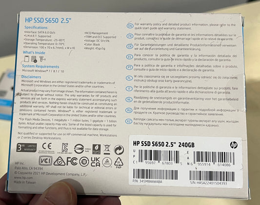 HP SSD S650 2.5 Inch 240GB Internal Solid State Drive, Lot of 3