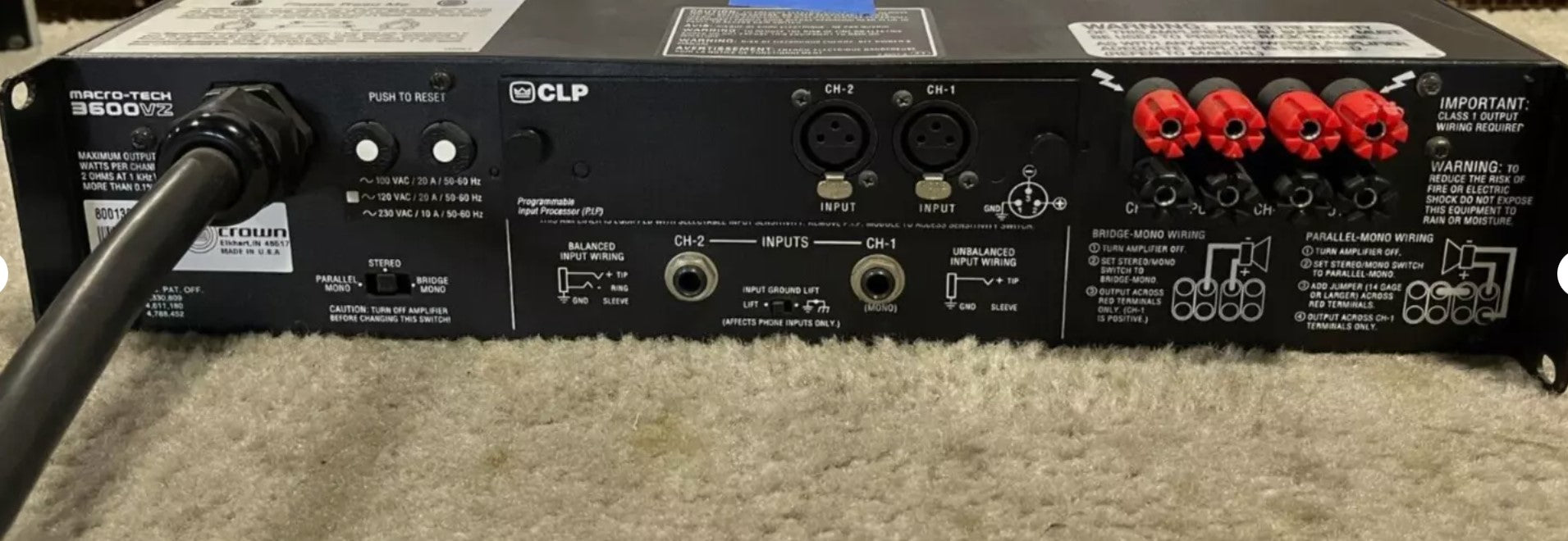 Crown Macro-Tech 3600vz Amplifier, L5 30 Connector