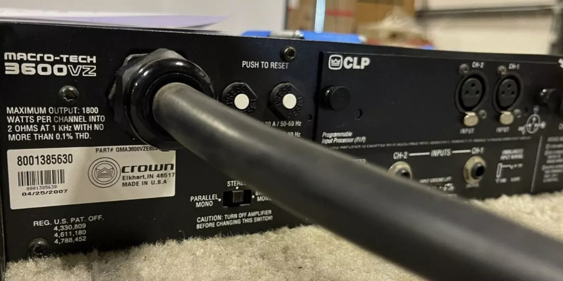 Used Crown Macro-Tech 3600vz Amplifier, L5 30 Connector For Sale